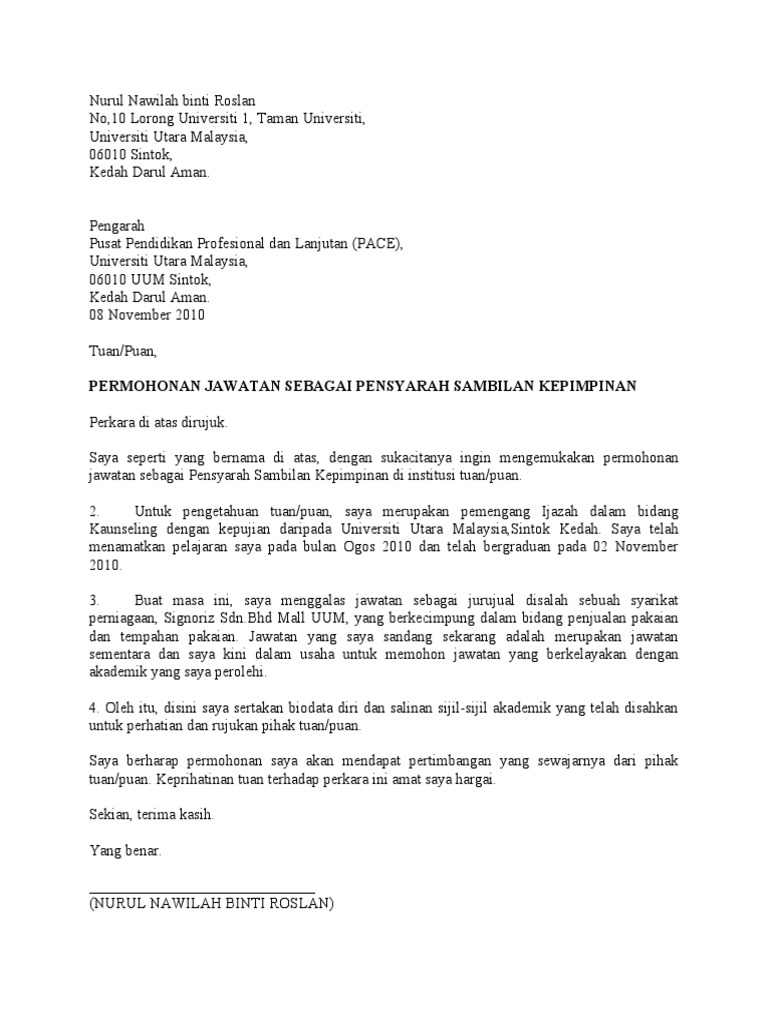 Contoh Surat Permohonan Kerja Pdf